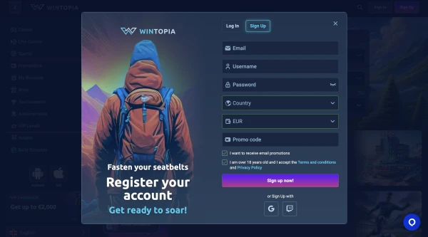 Crea il tuo account Wintopia: registrazione e verifica